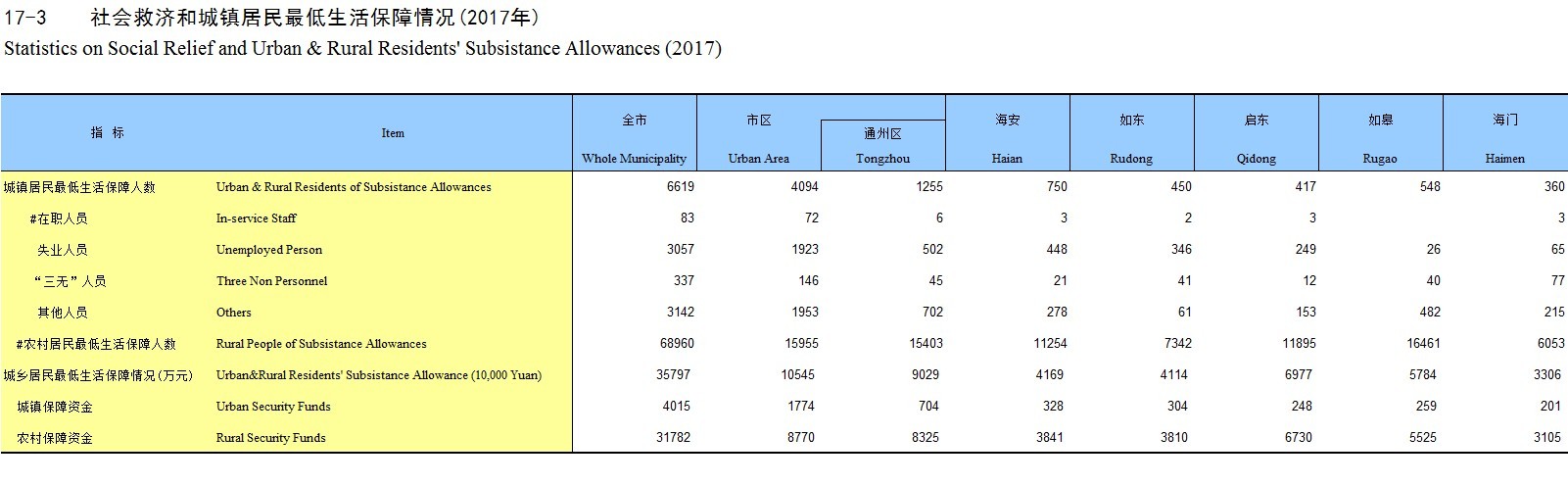 17-3 社会救济和城镇居民最低生活保障情况(2017年)