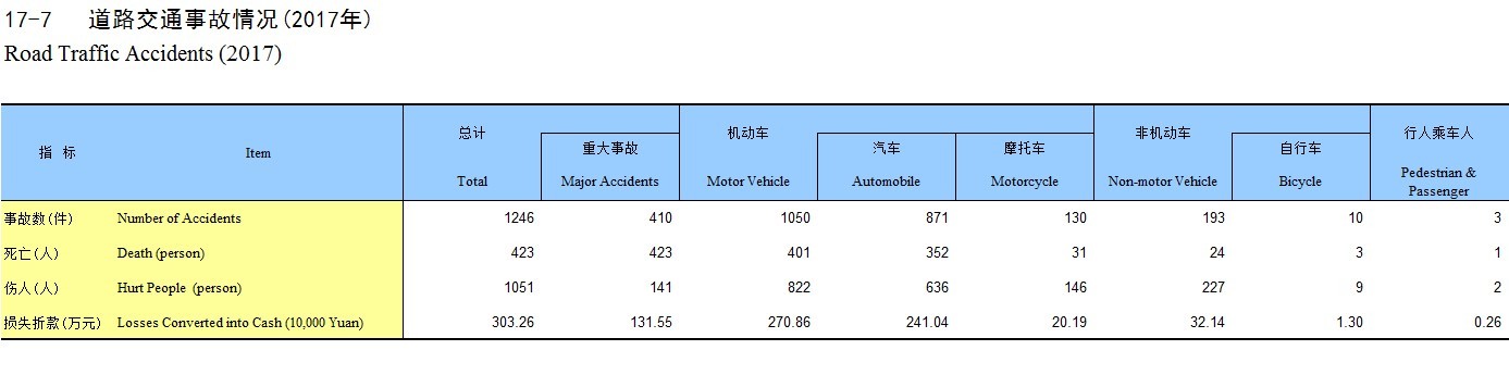 17-7 道路交通事故情况(2017年)