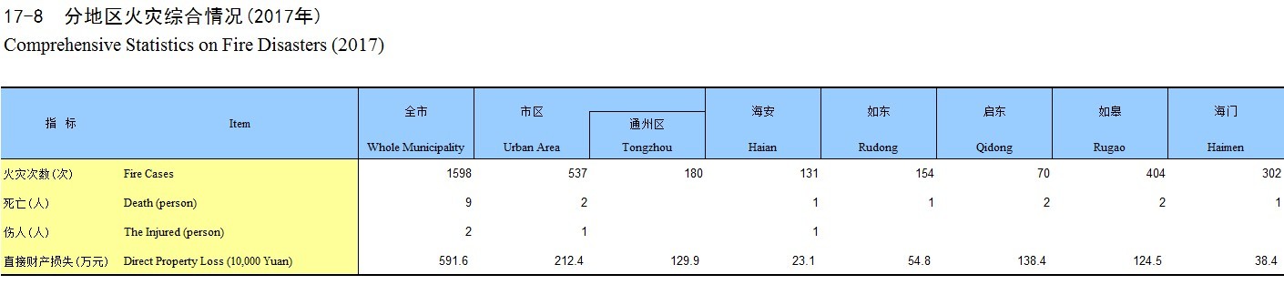 17-8 分地区火灾综合情况(2017年)