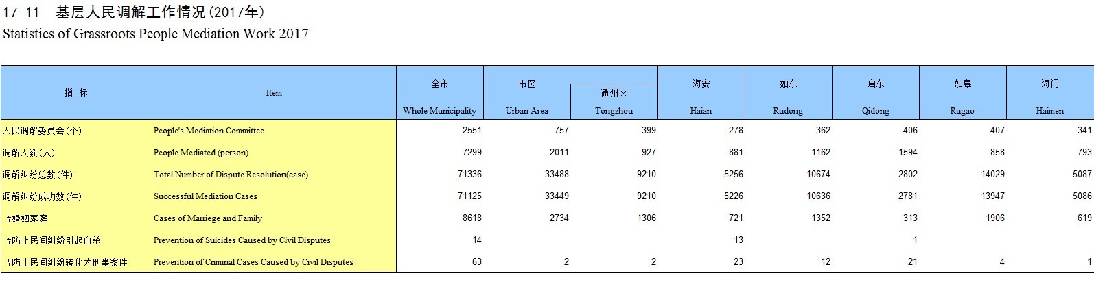 17-11 基层人民调解工作情况(2017年)