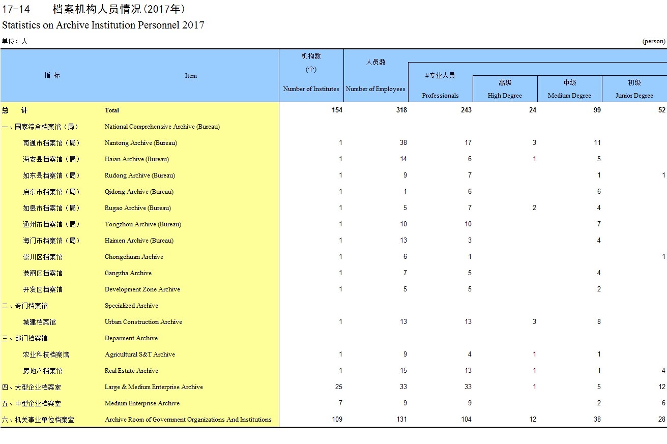 17-14 档案机构人员情况(2017年)