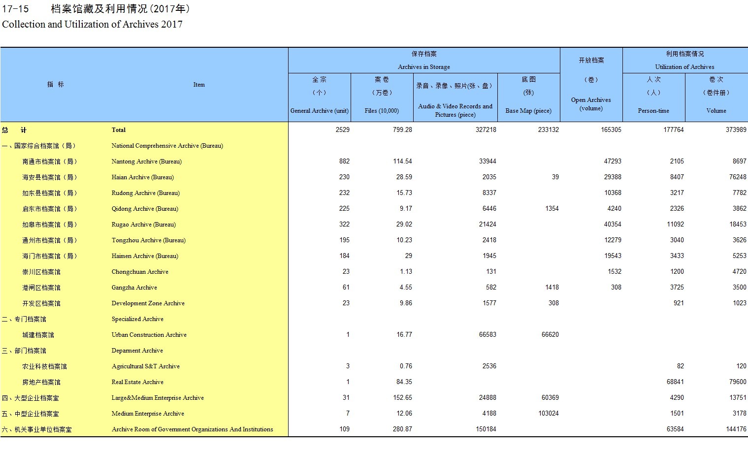 17-15 档案馆藏及利用情况(2017年)