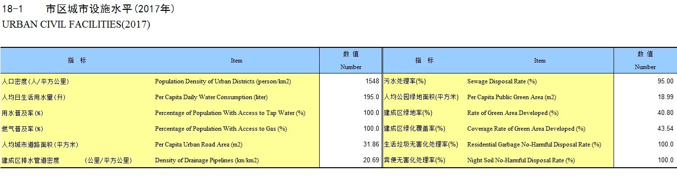 18-1 市区城市设施水平(2017年)
