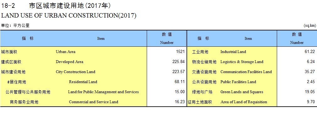 18-2 市区城市建设用地(2017年)
