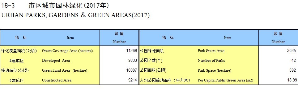 18-3 市区城市园林绿化(2017年)